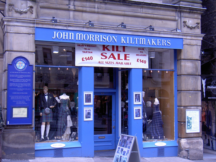 The High Street in Edinburgh is a great place to buy a Kilt but make sure you get the real thing if it costs less than £140 its not the real thing no such thing as a £30 kilt don't be fooled buy the genuine article.